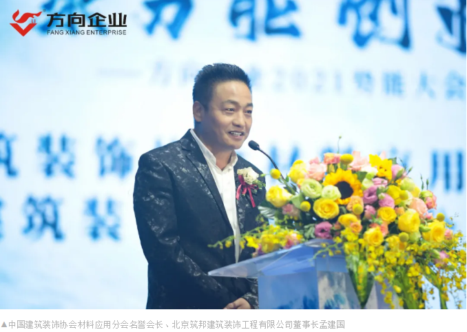 中国建筑装饰协会材料应用分会名誉会长、北京筑邦建筑装饰工程有限公司董事长孟建国在致辞中肯定了方向企业的产品与服务,并表示人有方向,企业也要有方向,方向企业MK在线(中国)唯一官方网站好、文化好、产品好,祝愿方向企业的未来发展越来越好,成为陶瓷行业的方向与标杆。