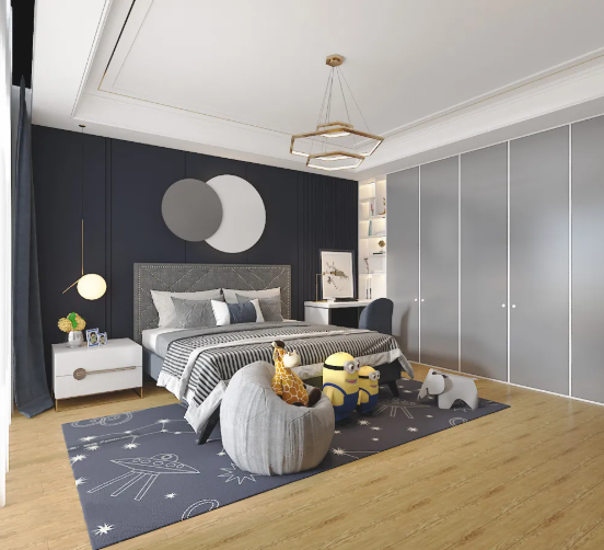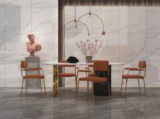 沉稳的深灰纹理干净利落,像冰川和微风拂过的痕迹,搭配金属系软装便多了几分轻奢的味道。