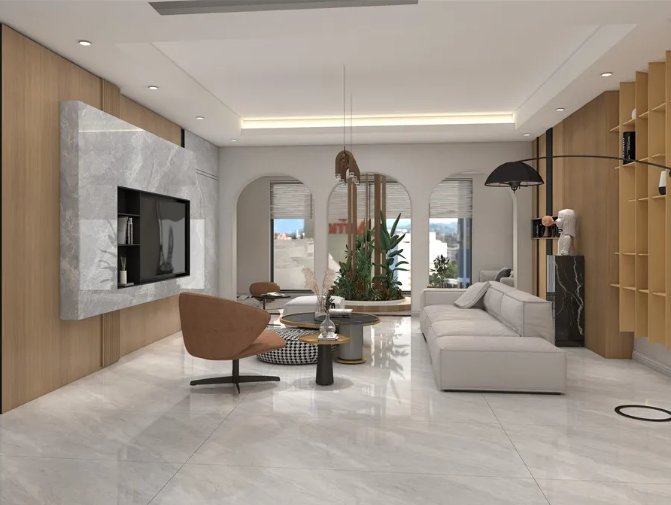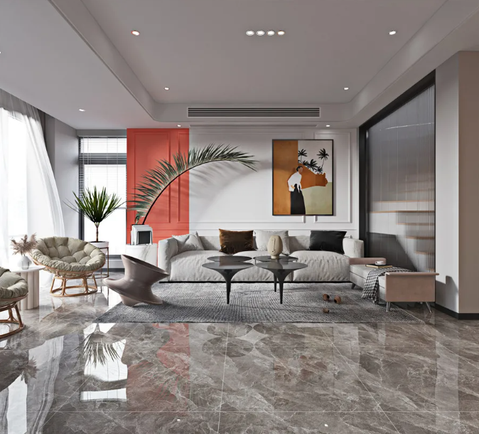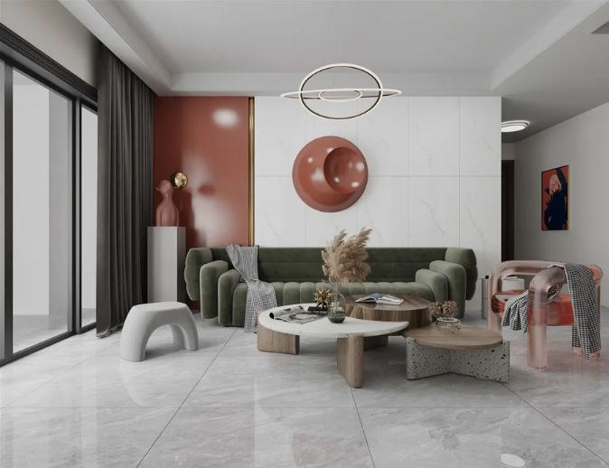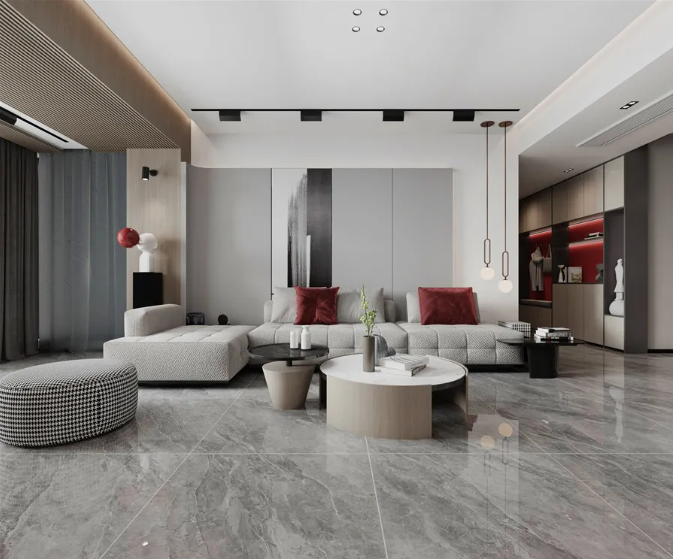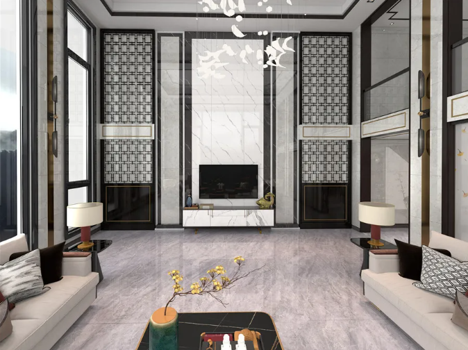 以玻璃、金属、镜面等颇有通透感的元素作装饰,增强大理石瓷砖的肌理质感,呈现出纯粹干净的感官效果,优雅舒适的格调油然而生。