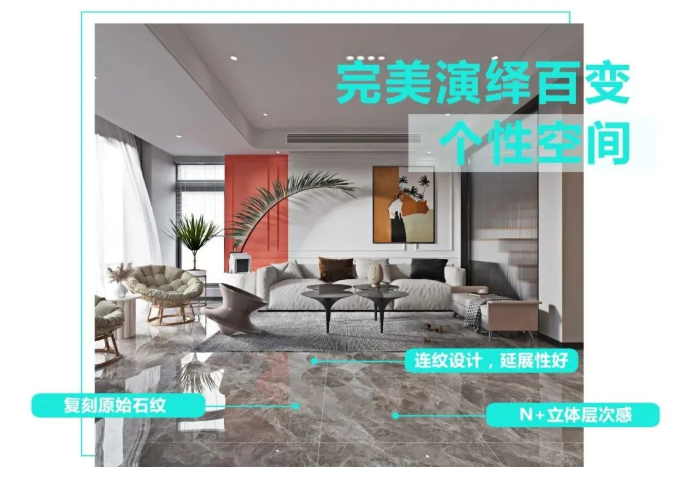 用产品与新生代群体沟通,龙翔尚嘉陶瓷全新打造年轻潮品——NEO系列900x900mm连纹大理石,颠覆传统瓷砖规格局限,以经典色系、连纹设计等元素塑造家居生命力和创造力,让空间更具年轻活力。