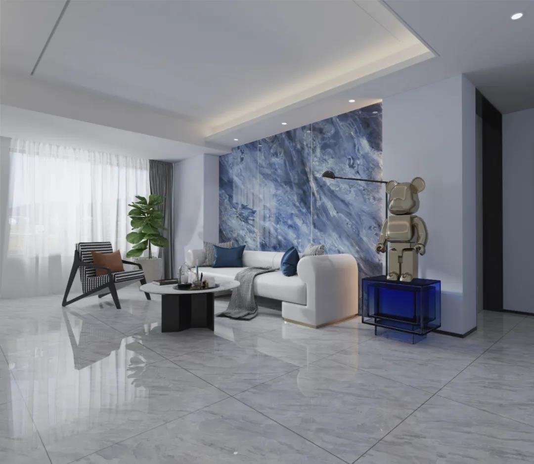 浅蓝的空间总能令人联想到无忧无虑的大海,以加入灰度的颜色增加空间质感,避免过分热烈色彩造成的视觉负担,清新舒适的格调呼之欲出。