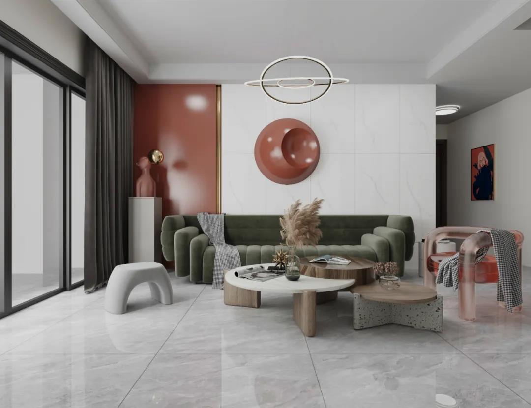 马卡龙色系和莫兰迪灰的混搭,不仅能避免色彩的过分跳跃感,也为单调的客厅注入全新的热情,百变又不乏清新,让整体空间更协调。