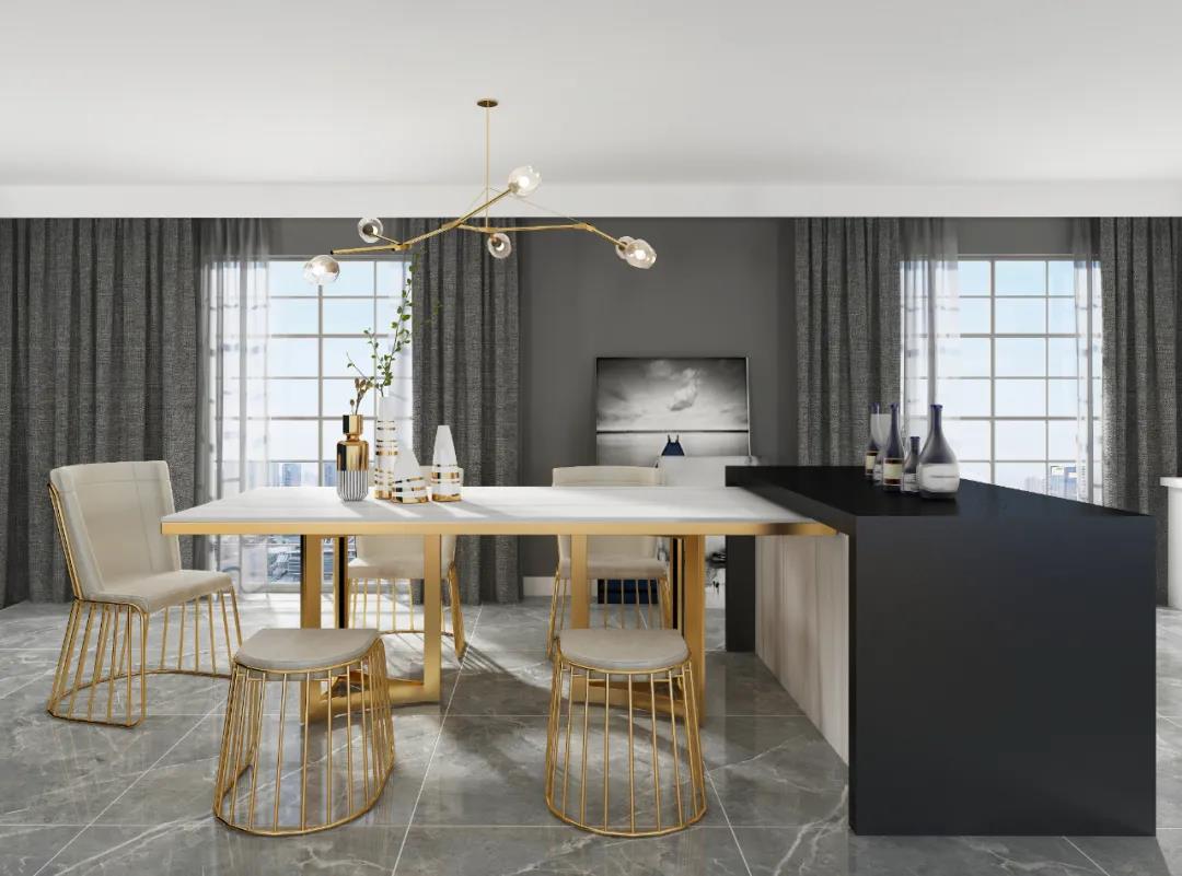 以岩板作为餐桌设计的主要材质,将时尚极简风演绎极致。大规格设计包容展现更多纹理细节,实现视觉上的拓展延伸,凸显出居者不俗的审美品味。