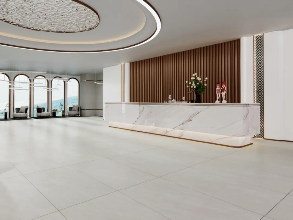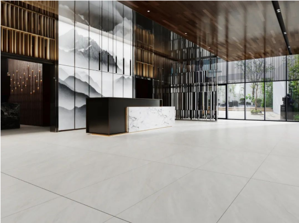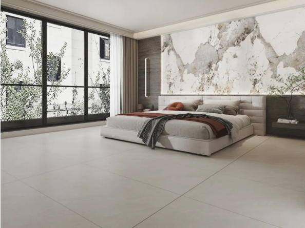 【伽马灰】的地面主调,与白色台面产生自然而舒适的氛围。轻柔的色彩营造温暖优雅的氛围,沉浸其中,清雅之感铺面而来。