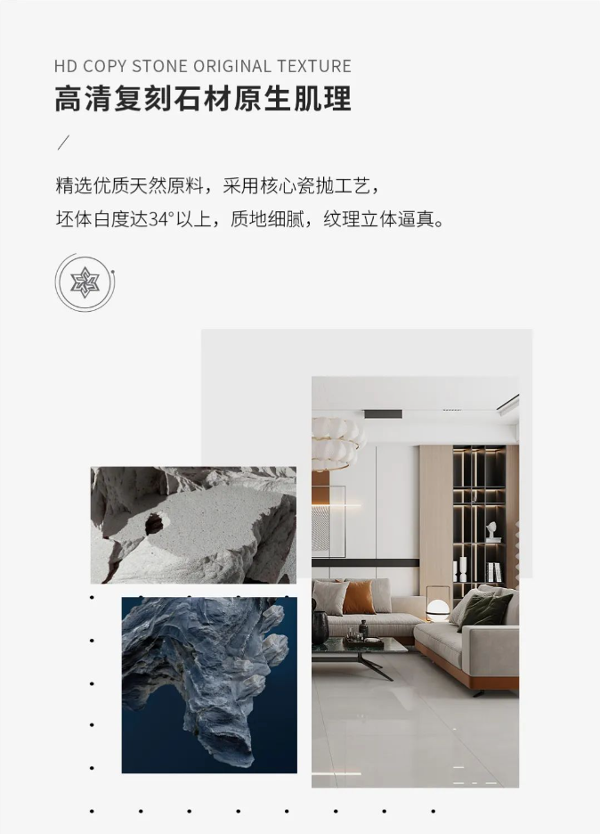 喜翡稳步砖,在复刻大理石肌理的基础上加以创新,遵循素雅极简原则,只保留其细节肌理,形成素色与自然纹理恰到好处的平衡感。