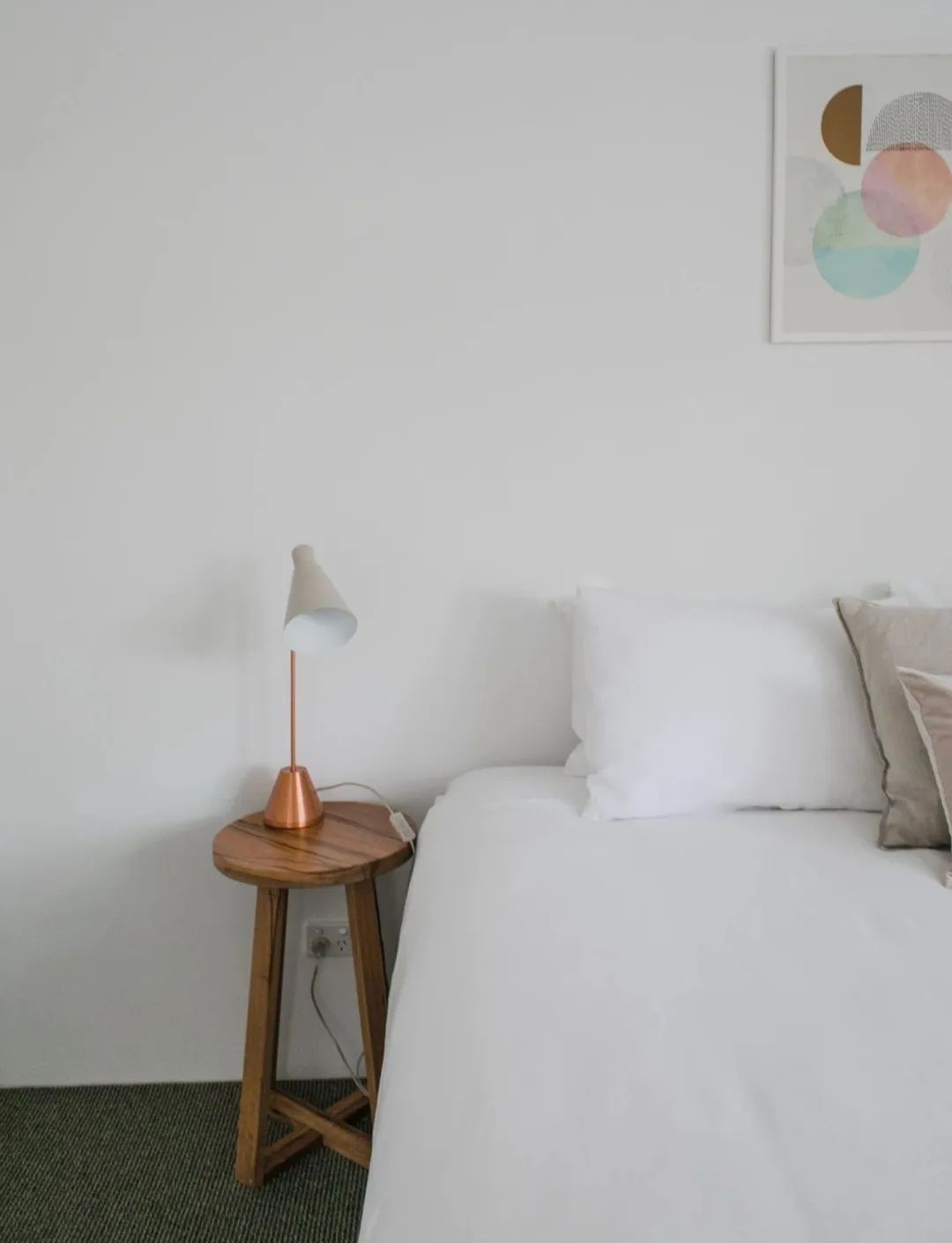 卧室是极具私密性的个人空间,是让人身心放松的地方。以简洁色彩为底,尽量避免选用高饱和度色彩,让人视觉更放松自在。