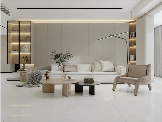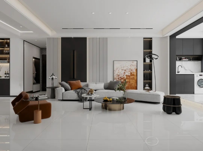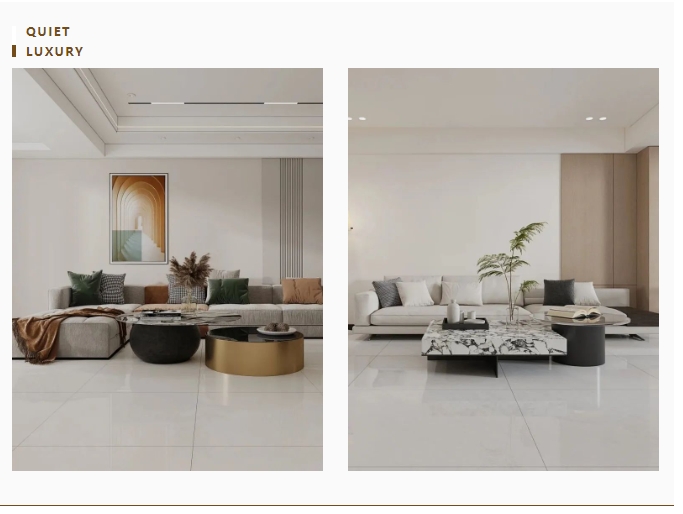 中性色是打造静奢风的关键词,是“静”,也是“素”。以灰色、白色、大地色等瓷砖作为空间底色,以静素色彩的演绎,让家居整体视觉透露出低调的奢华与从容的雅致。