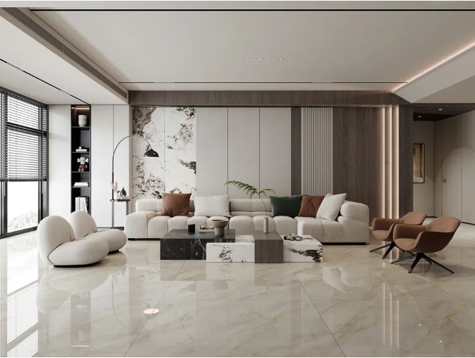 岩板坯体工艺,坯体白度更高,釉面平整如镜,不眩晕、不刺眼、更舒适,幻化为空间中深深浅浅的微光,让空间高级感进阶。