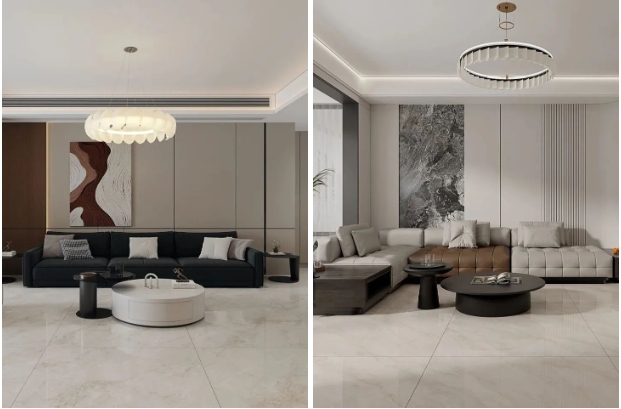 1200x1200mm具有更大的空间延展性,不仅能突破传统规格瓷砖所带来的审美疲劳,更能提升家居空间的质感与调性。与此同时,在铺贴应用上,用砖量更少,相比其他尺寸更便于切割加工。