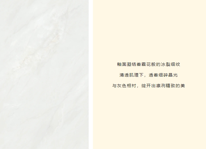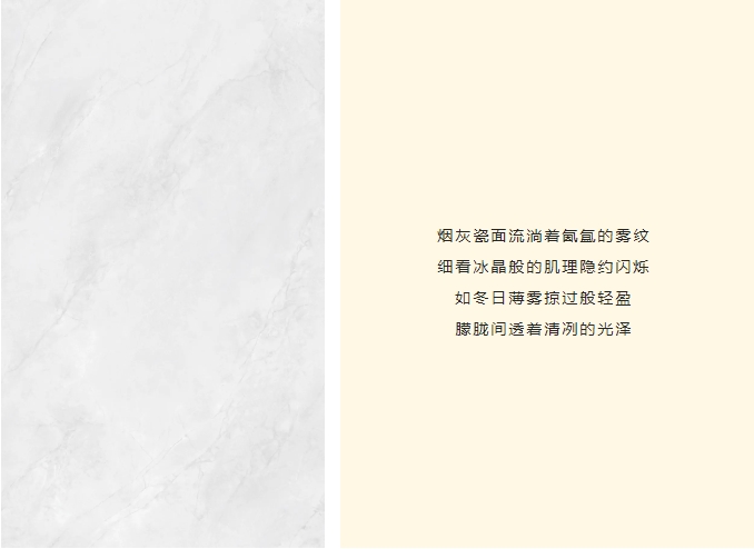 突破传统瓷砖的二维表达,以三层纳米釉料叠加工艺,构筑立体光感矩阵,经1280度高温淬炼,凝结98度水晶光感,让釉面在岁月侵蚀中始终葆有初生般的透润光泽。