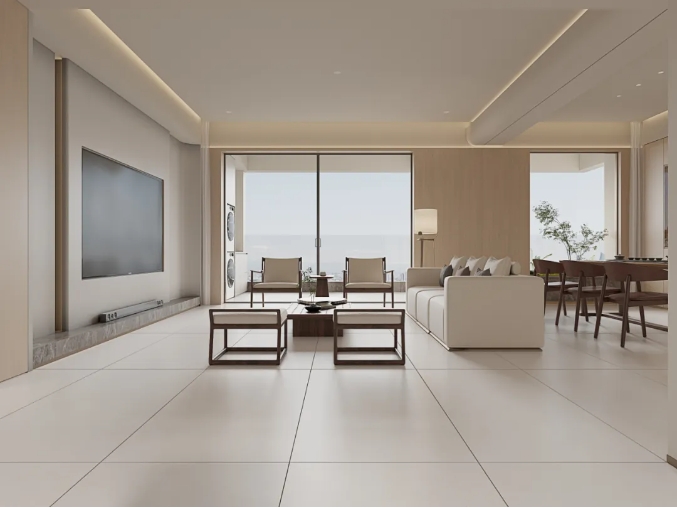 设计师撷取天地间最灵动的瞬间——破晓时分,远山被薄雾轻锁,曙光微浸山石的暖意。白雾在沉稳的灰棕底色上自由游走、交织、